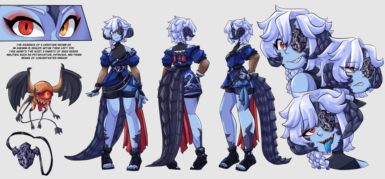 At some point during their adolescence Matar ended up forging a pact with a voidsent, an ahriman known as Mephistopheles. This was more akin to a curse however, as the voidsent took residence in Matar's left eye, altering its color to match. The gaze of this eye caused those of weaker mental fortitude to be filled with fear and suffer a powerful, nearly permanent petrification spell. This resulted in the loss of several tribe members at the time and Matar was reviled by the remaining tribe, nearly being exiled if not for their father and an eyepatch to conceal the eye.These days Matar has control over said eye so on rare occasions its unconcealed, but it remains an unsettling point of conversation nonetheless.